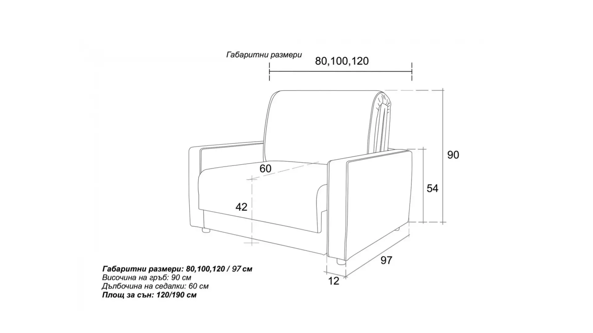 Размери: 120/97/90 см