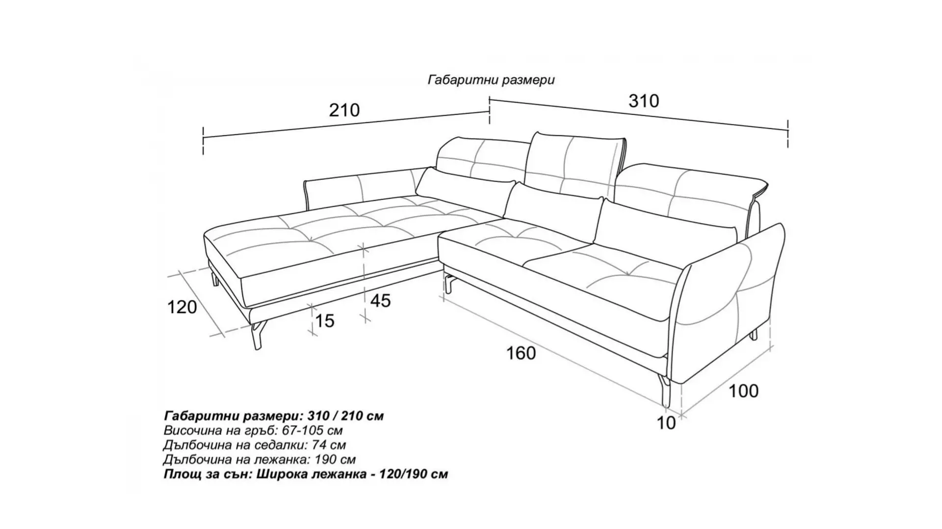Диван Финикс е дизайнерско решение за всяко съвременно жилище. Тънките, извити елегантни подлакътници, високите метални крачета и широката за двама лежанка го превръщат в емблематично, и естетично убежище от градския живот. Изработен е от висококачествени материали, които гарантират здравина и дълготрайна устойчивост. Седалките са с двулицеви покет матраци, поставени върху метална ламелна рамка, осигуряващи стабилност и удобство. Не разполага с ракла и разтегателен механизъм, може да се ползва широката лежанка за сън. Има механизъм за регулиране височината на облегалките и допълнителни малки възглавници за още по-голям комфорт по време на почивка. Диванът е универсален, посоката му се определя при монтажа.
