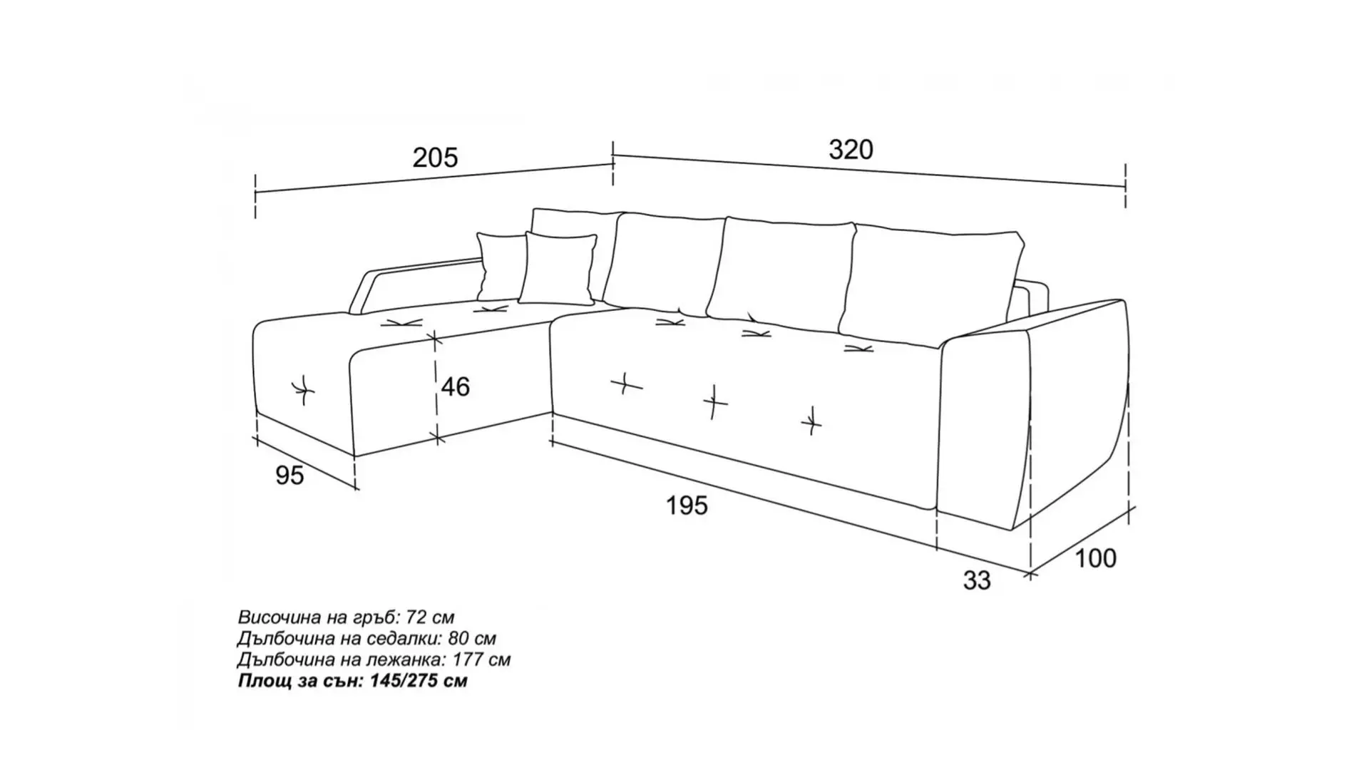 Размери: 320/205/72 см