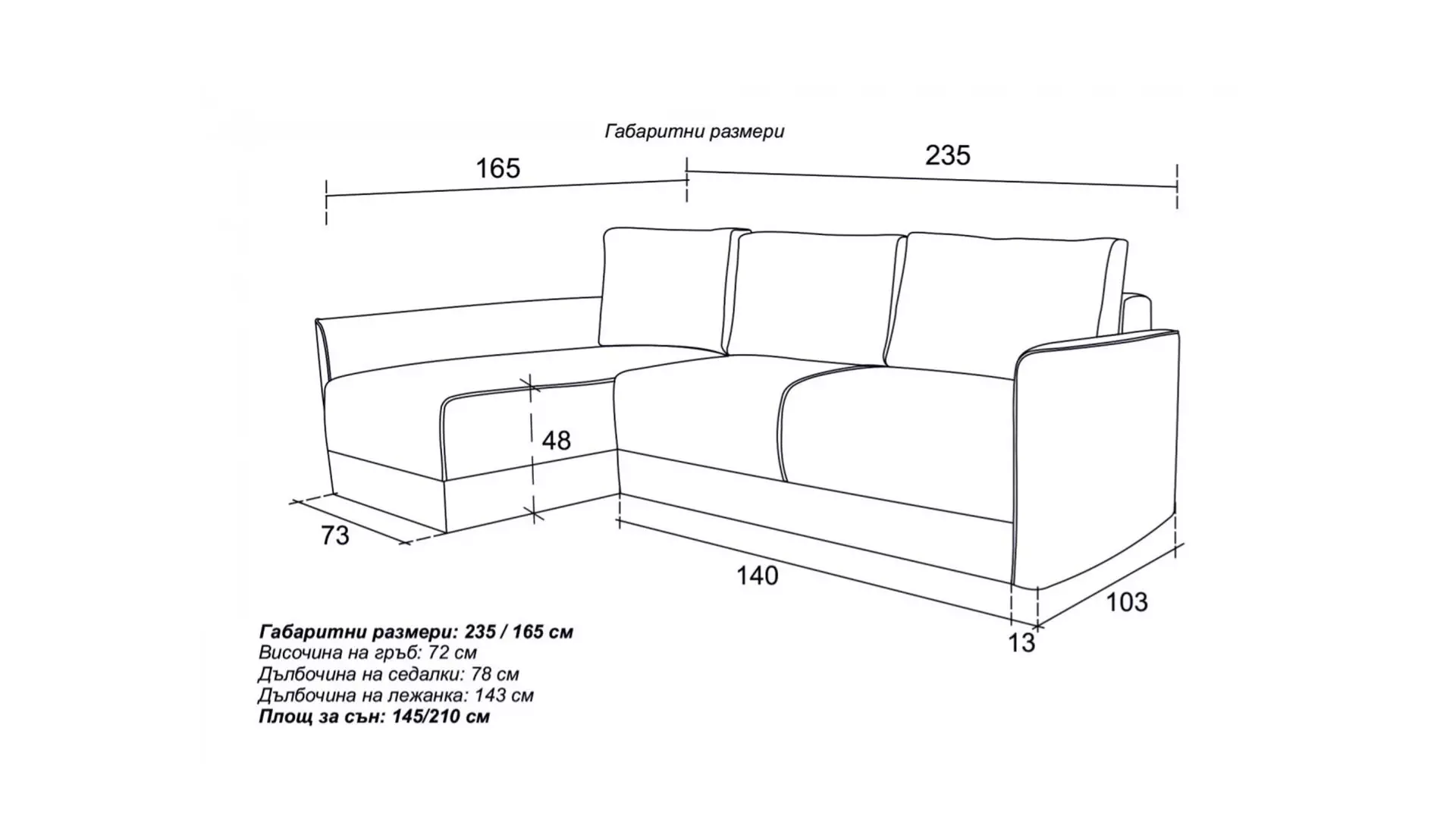 Размери: 235/165/72 см