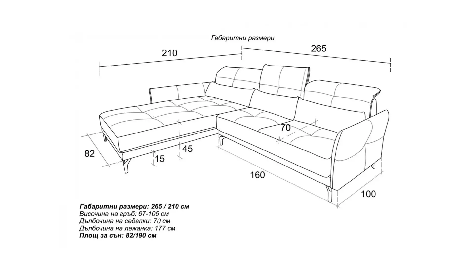 Площ за сън: 82/190 см