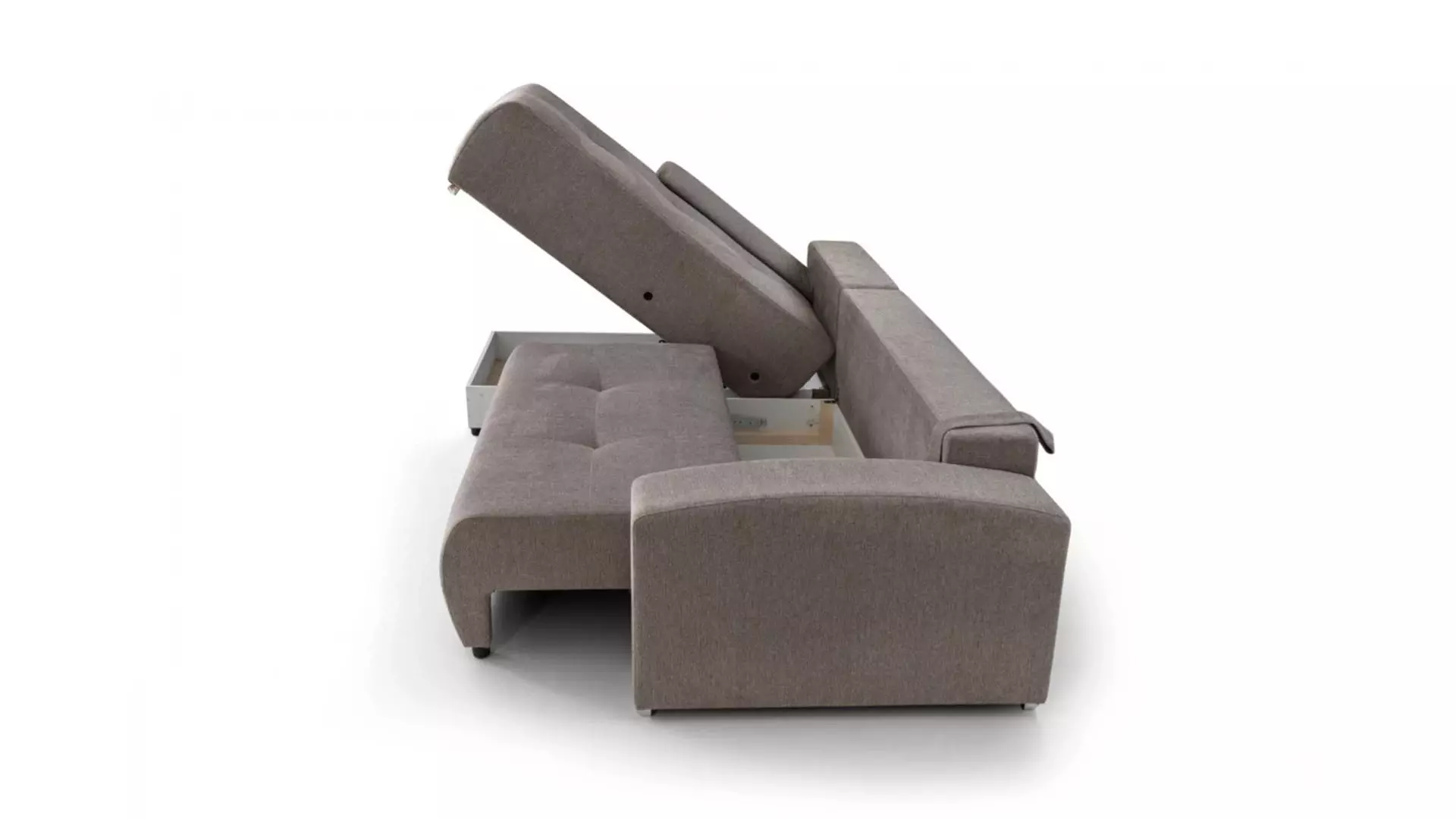 Ъглов диван Мини Виктор е с модерен дизайн и е изключително подходящ, както за малки, така и за големи жилищни пространства. Има опция сън и две ракли за багаж, което го прави практичен и удобен. Облегалните възглавници са със свалящи се калъфи с цип за по-лесна поддръжка. Предлага се универсален, дори самите вие може да го направите ляв или десен.