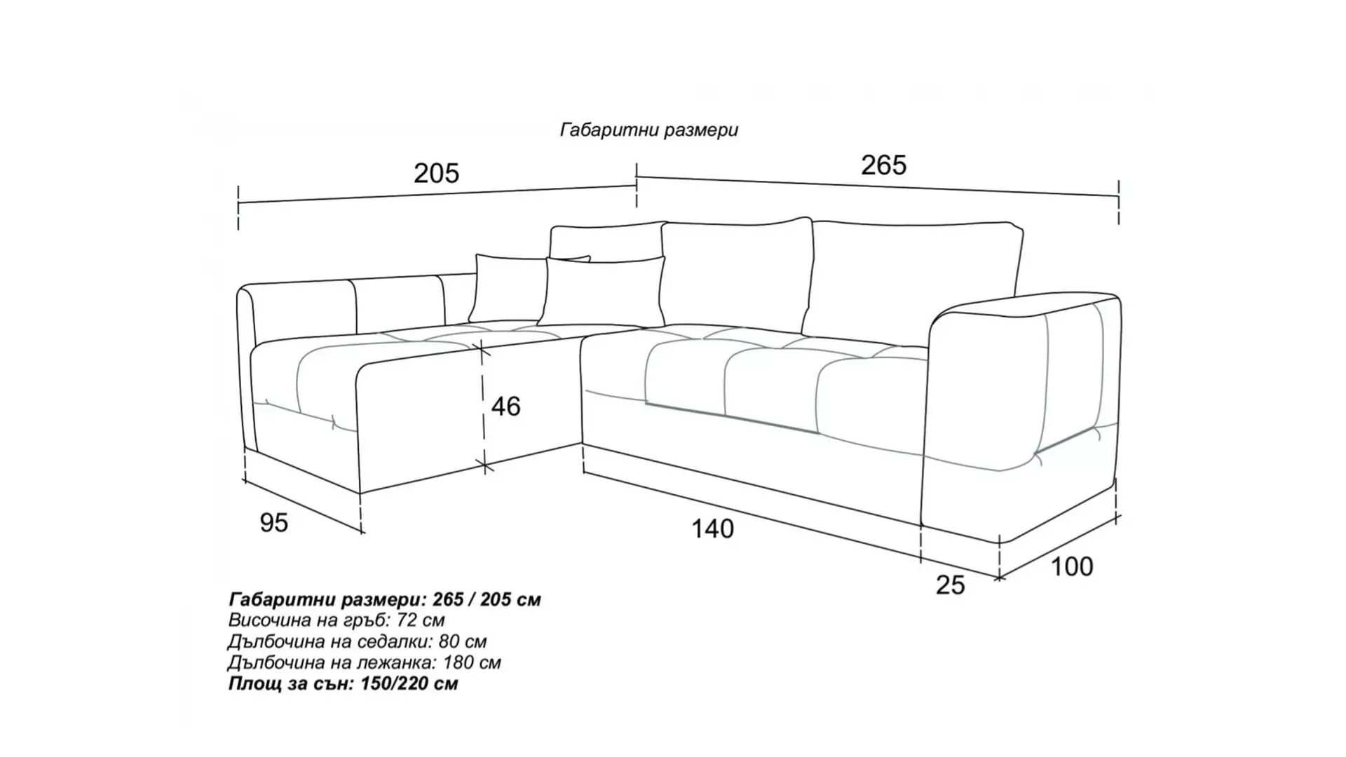 Размери: 265/205/72 см