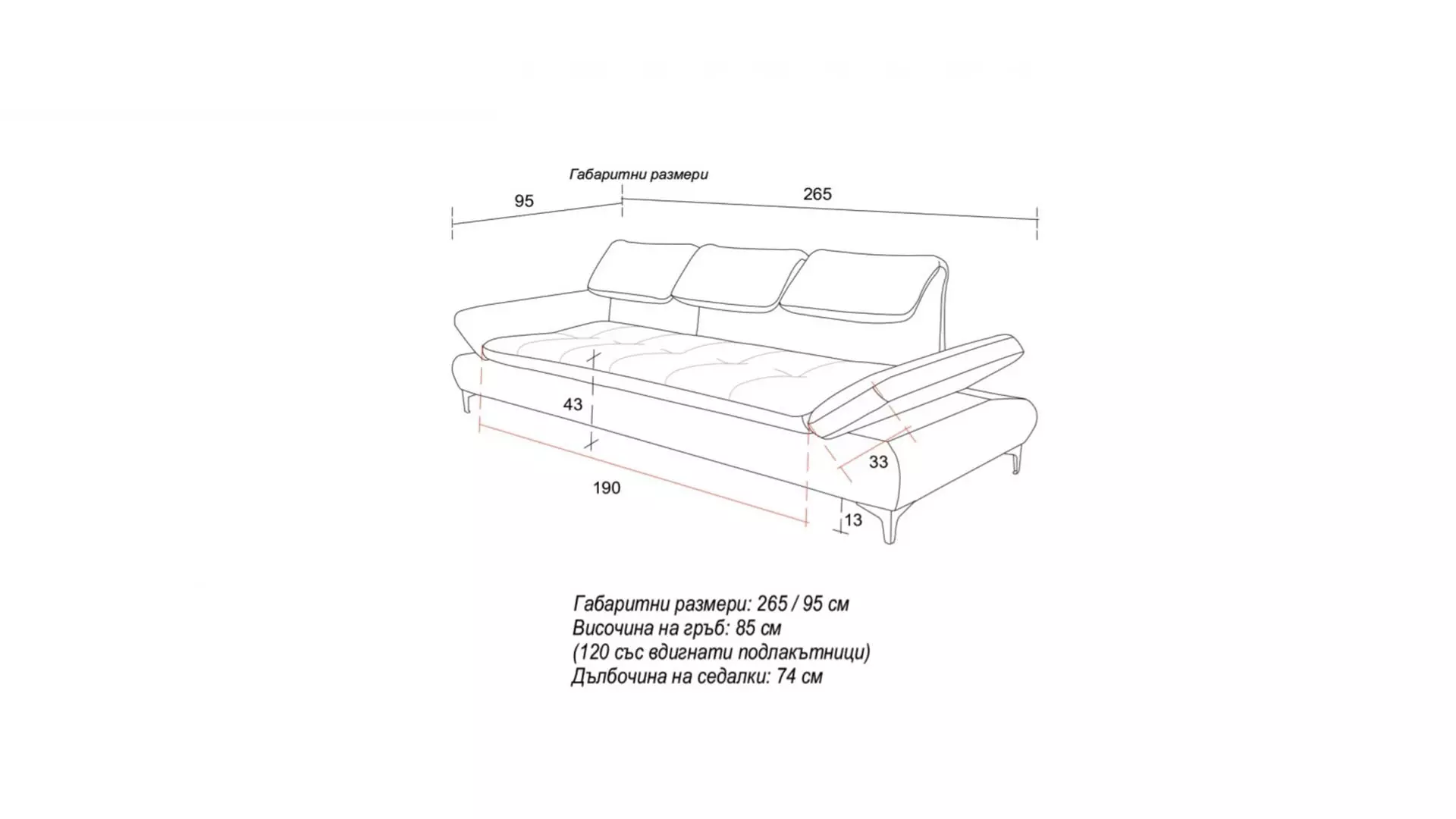 Материали: Метална конструкция, масивна дървесина, МДФ, еластични колани, пенополиуретан, механизъм, регулиращ височината на облегалката