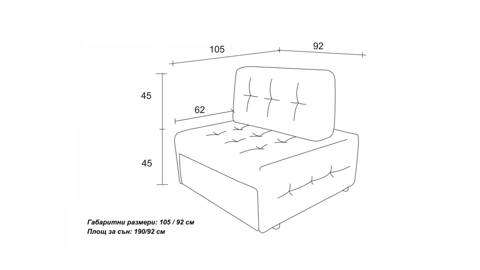 Размери: 105/92/90 см