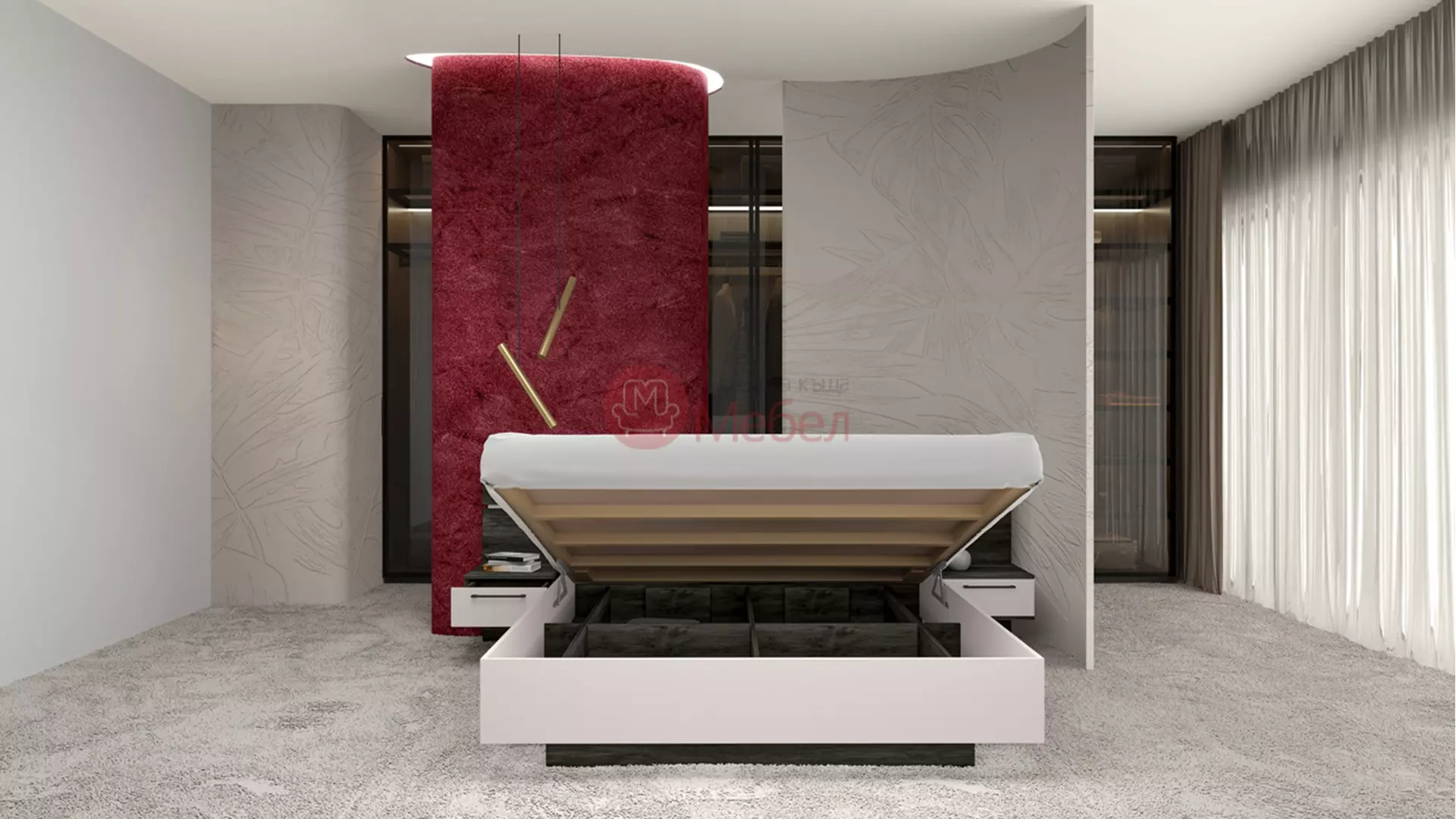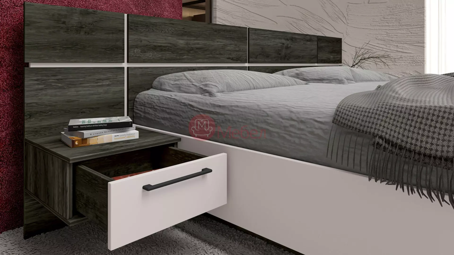 Легло Сити 7088 е в приятно съчетание на дъб герано и кашмир. Леглото е подходящо за еднолицев или двулицев матрак с размери 160/200 см, като при двулицев е необходима допълнителна подматрачна рамка. Разполага с повдигащ механизъм и ниши в подматрачното пространство за по-добра организация на вещите. Има голяма табла с вградени практични нощни шкафчета.