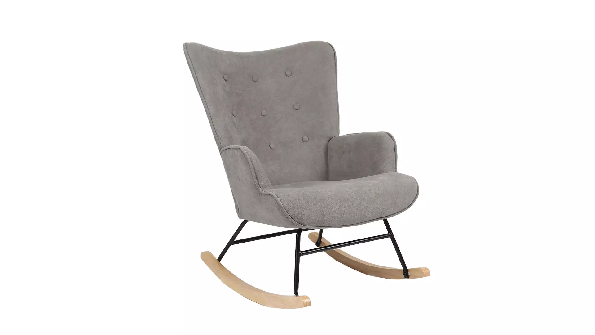 Люлеещ фотьойл Eliot е удобна и стилна мебел за вашата дневна или спалня, с мека седалка, гръб и подлакътници, тапицирани с дамаска.