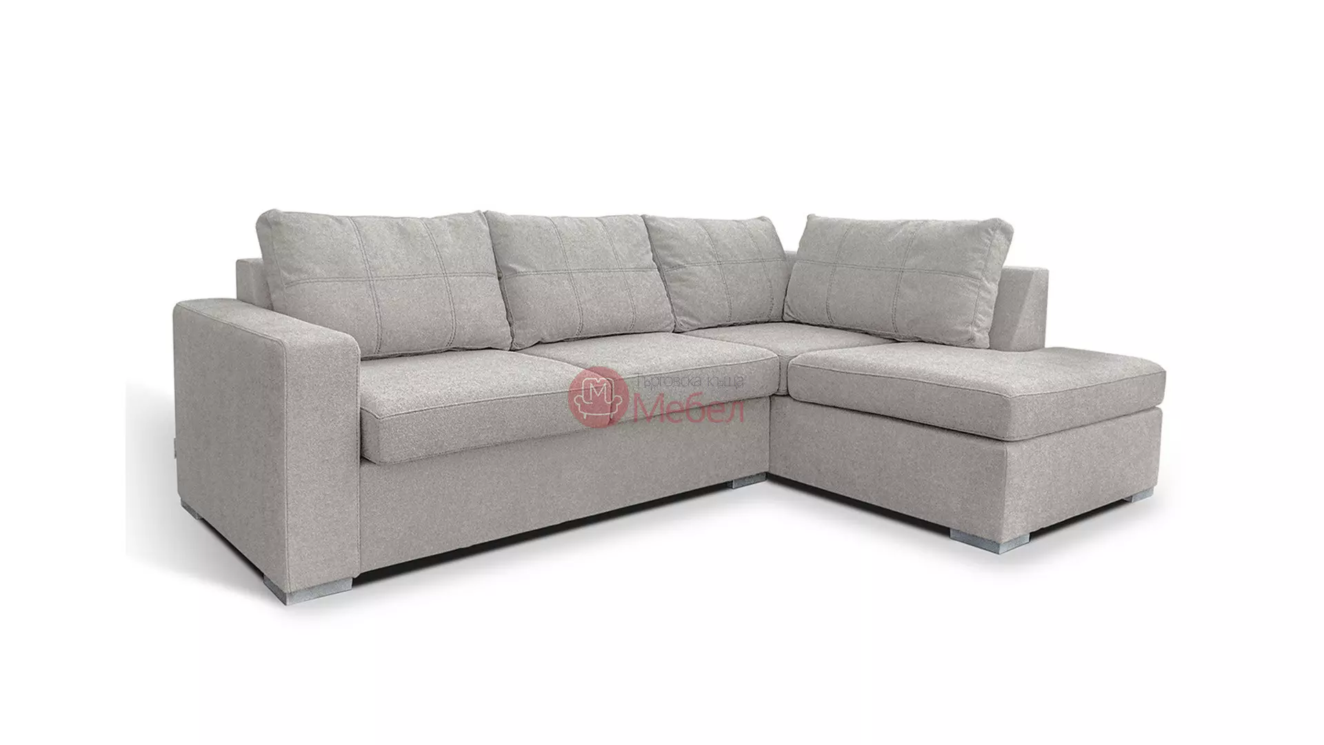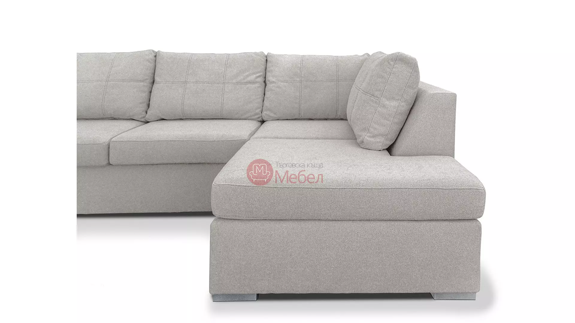 Ъглов диван Kemi е със семпъл дизайн, подходящ за заслужена почивка след натоварен ден. Изработен е от масивна конструкция от ПДЧ и дървесина, съчетана с мека пяна върху еластични колани. Възглавниците са с ципове и пълнеж от силикон, лицевият им тигел допълва стилния вид на изделието. Диванът е неразтегателен, не предлага функция сън и ракла за багаж. Възможност за избор на лява или дясна конфигурация.