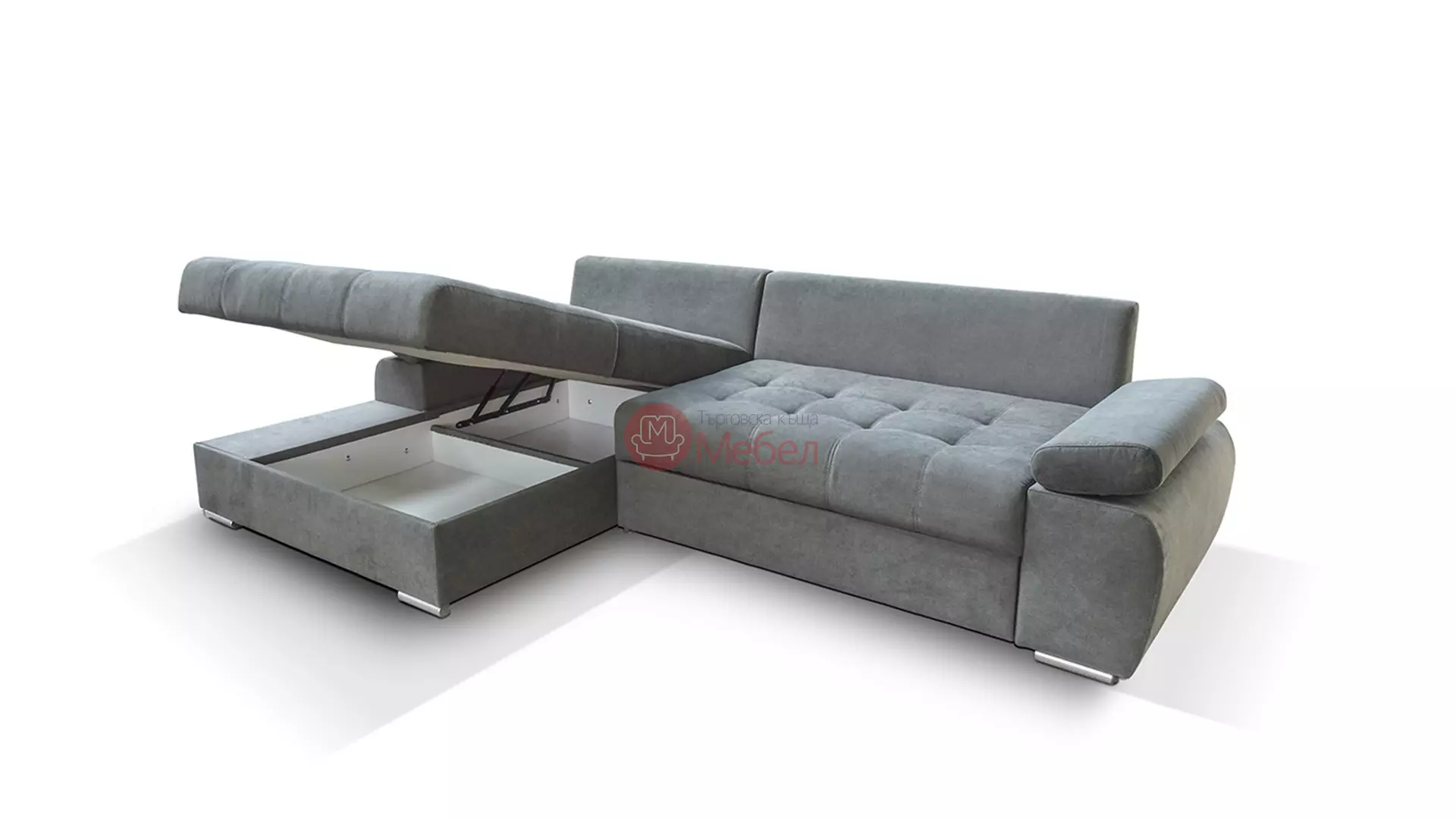 Ъглов диван Стиле е идеален за Вашия модерен дом. Удобните възглавници за сядане са изработени от пяна, поставени върху колани и покет пружини, осигуряващи комфорт при потъване. Има меки декоративни и лумбални възглавници, които завършват стилната визия. Лежанката е с впечатляваща широчина от 131 см. Диванът е разтегателен, с функция сън, чрез потапящ механизъм и голяма ракла за багаж. Възможност за избор на лява или дясна конфигурация, на снимката е с лява.