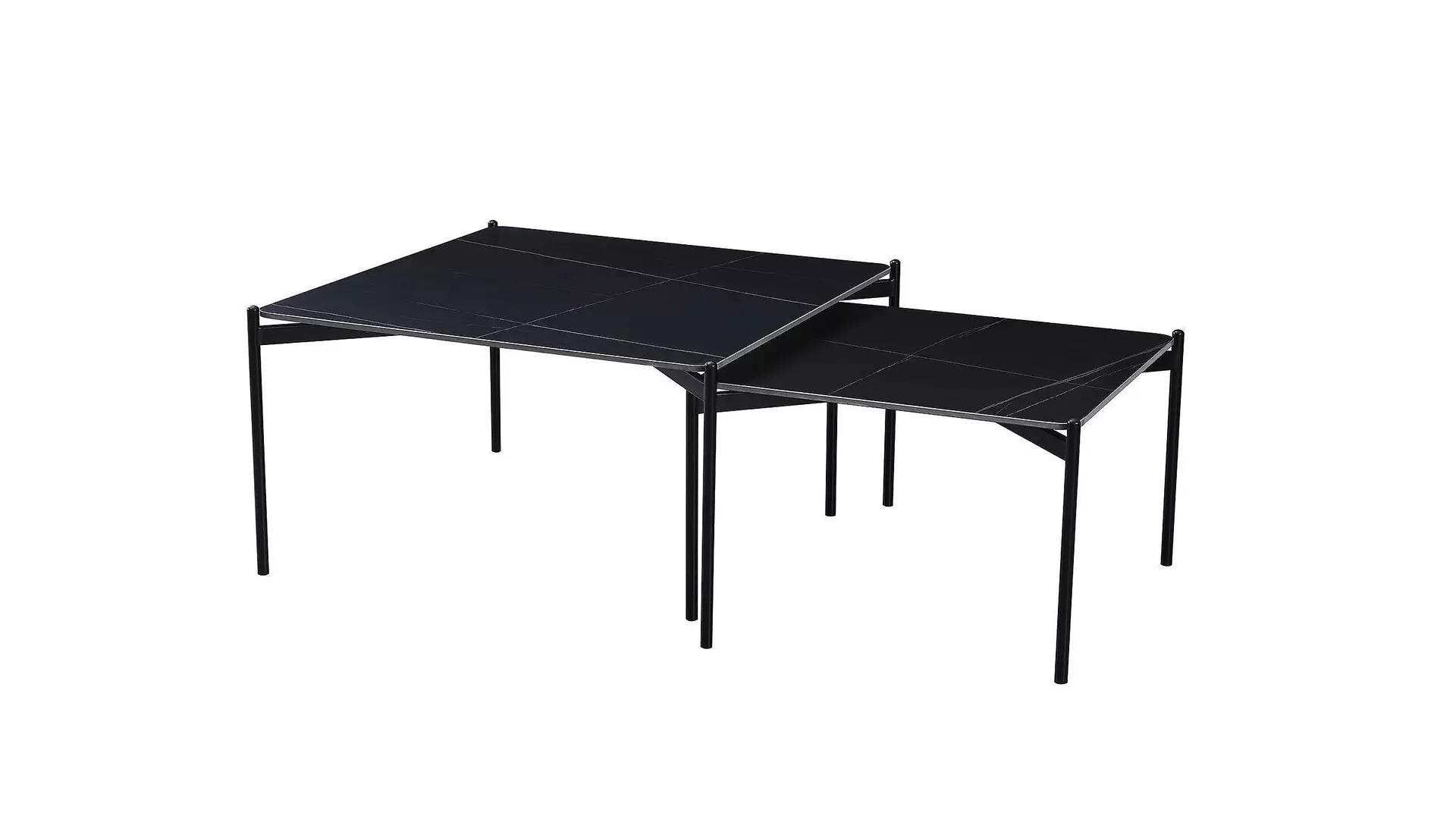 Комплект маси Eliza позволява гъвкаво подреждане според нуждите и пространството, това е идеалната комбинация от естетика и функционалност. Съчетава синтерован камък с мраморен ефект и черна метална конструкция.