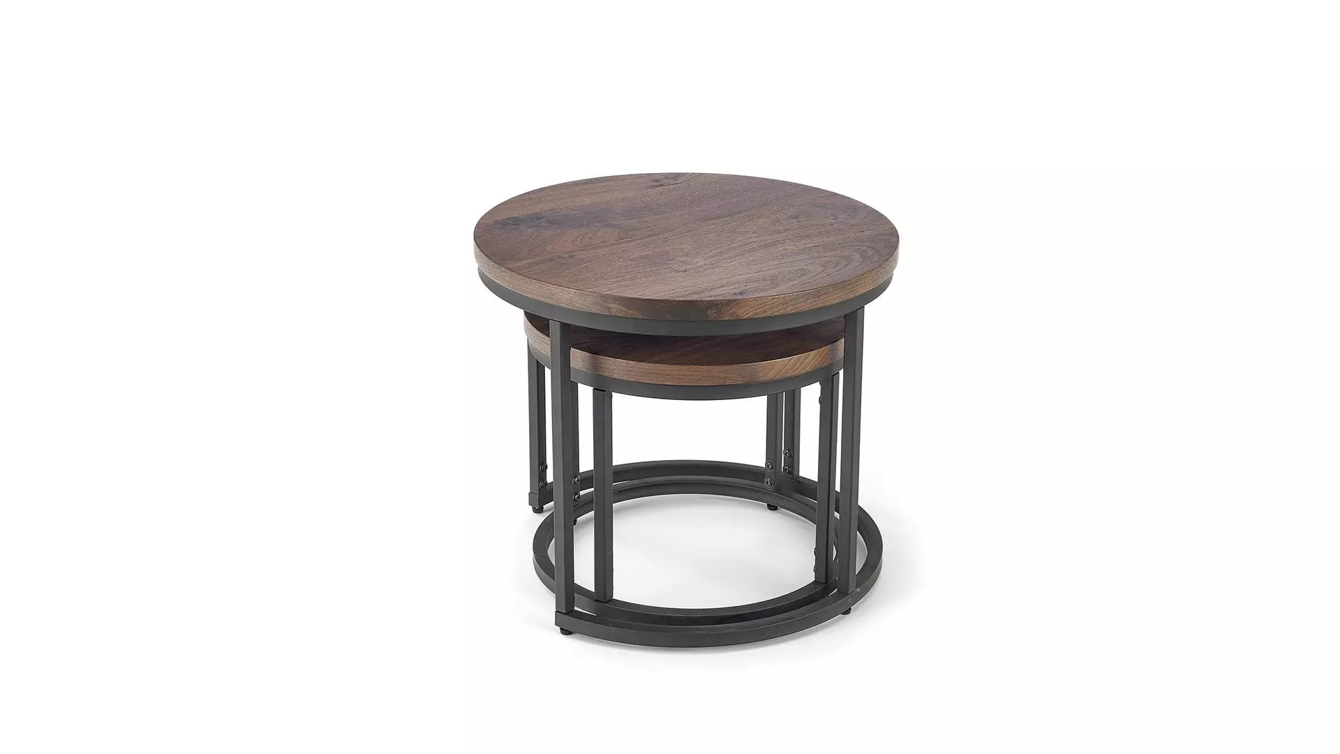 Комплект маси Oreo е идеален избор за Вашата дневна или офис, елегантно съчетание на МДФ в цвят орех и метална основа.