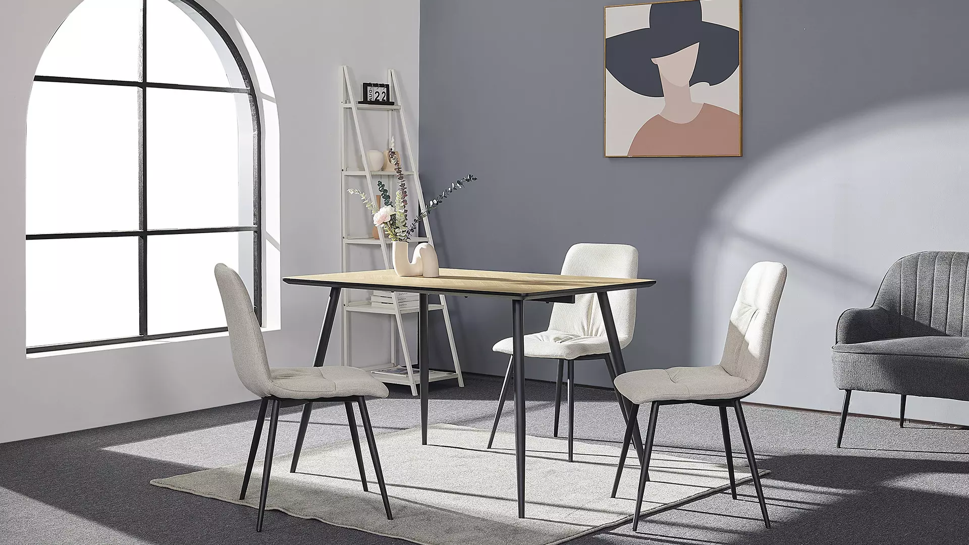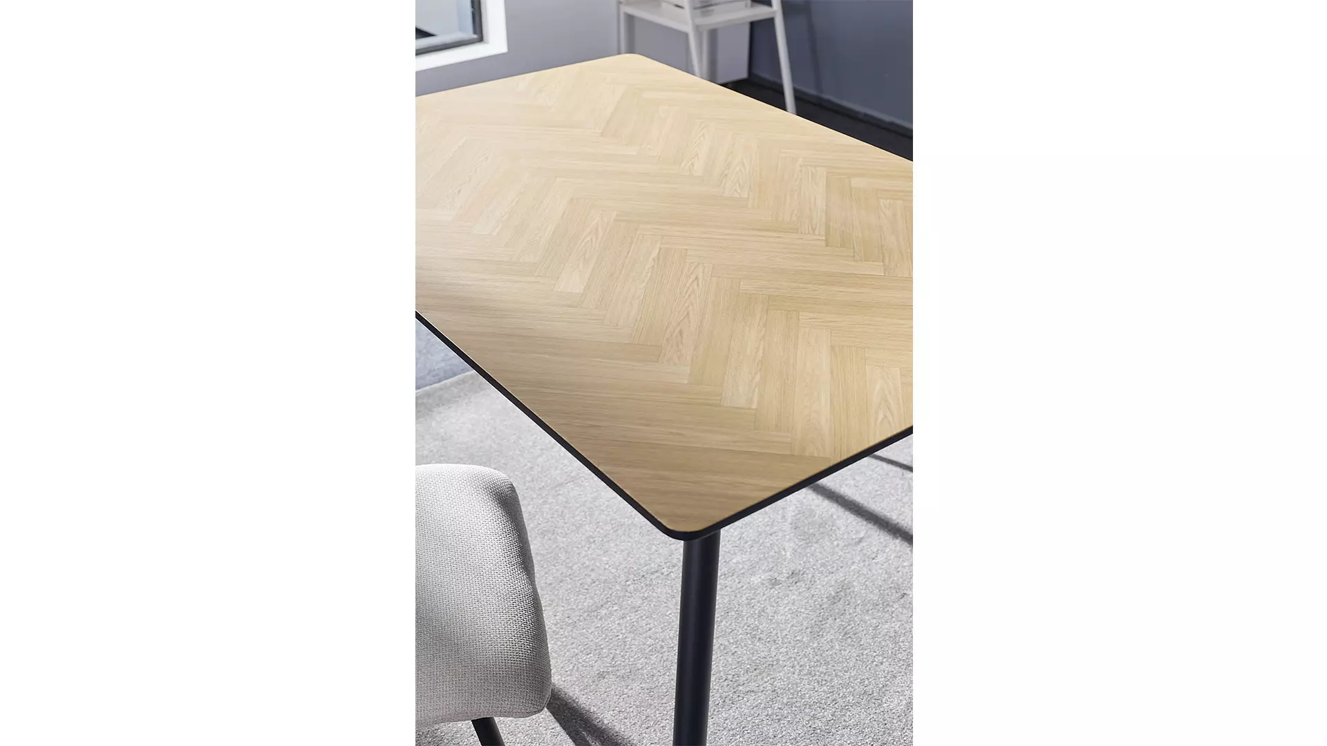 Трапезна маса Philip е с изчистен дизайн и елегантни линии, подходяща е както за ежедневна употреба, така и за специални събития. Приятна комбинация на плот в цвят натурален с черни метални крака, придаващо уют във всекидневната.