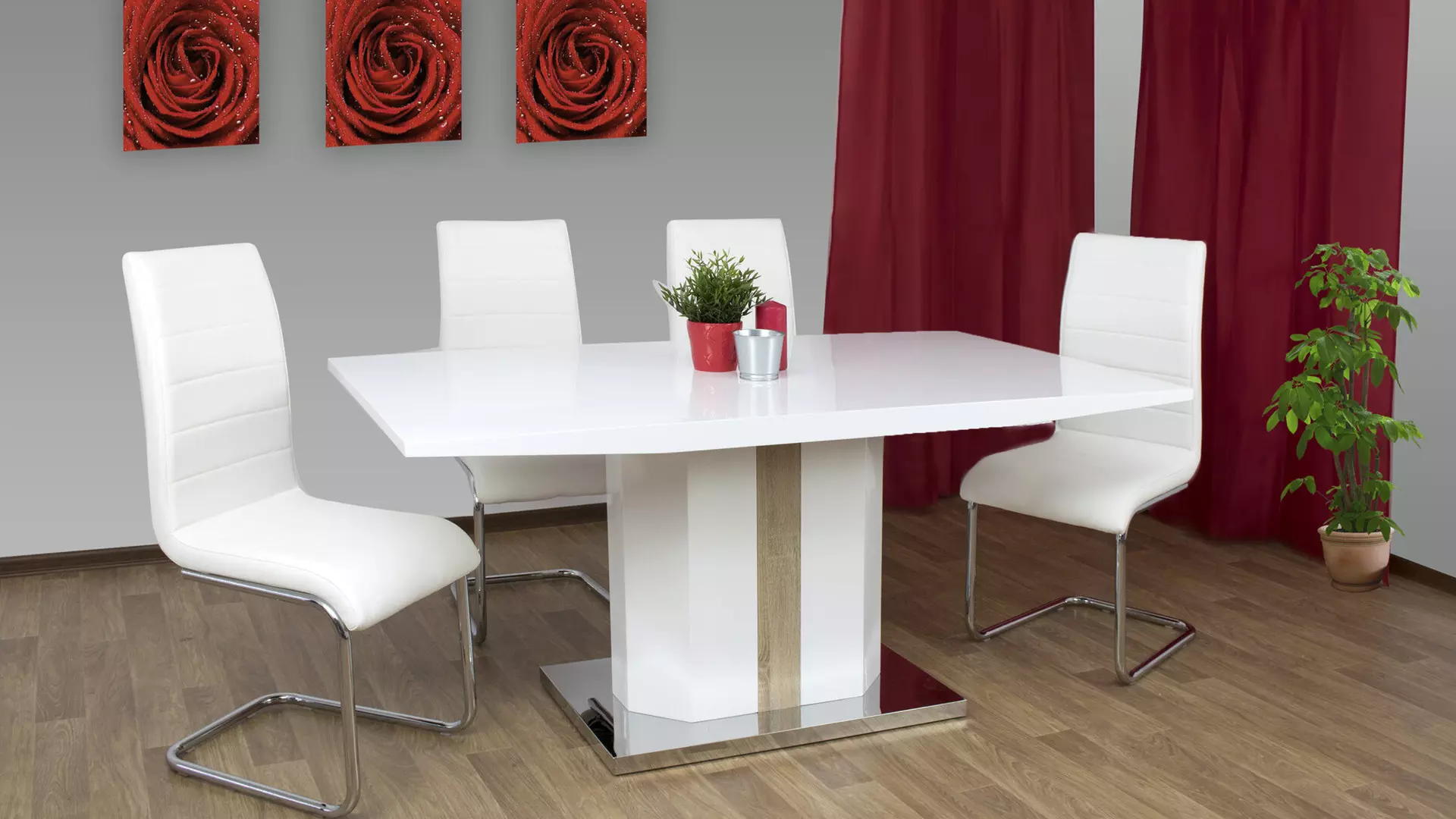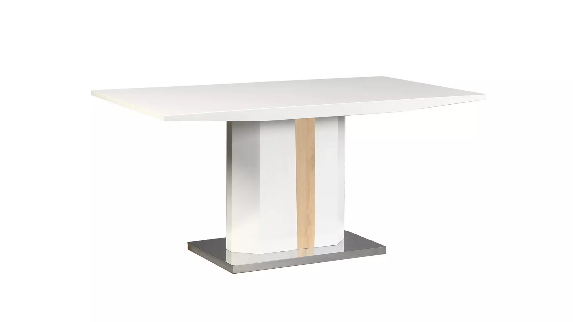 Tрапезна маса Teo е идеален избор за любителите на светлите декори, съчетава плот от МДФ и метална хромирана основа. Тази маса е не само функционална, но и стилна, добавяйки нотка изтънченост и клас на всяко помещение.