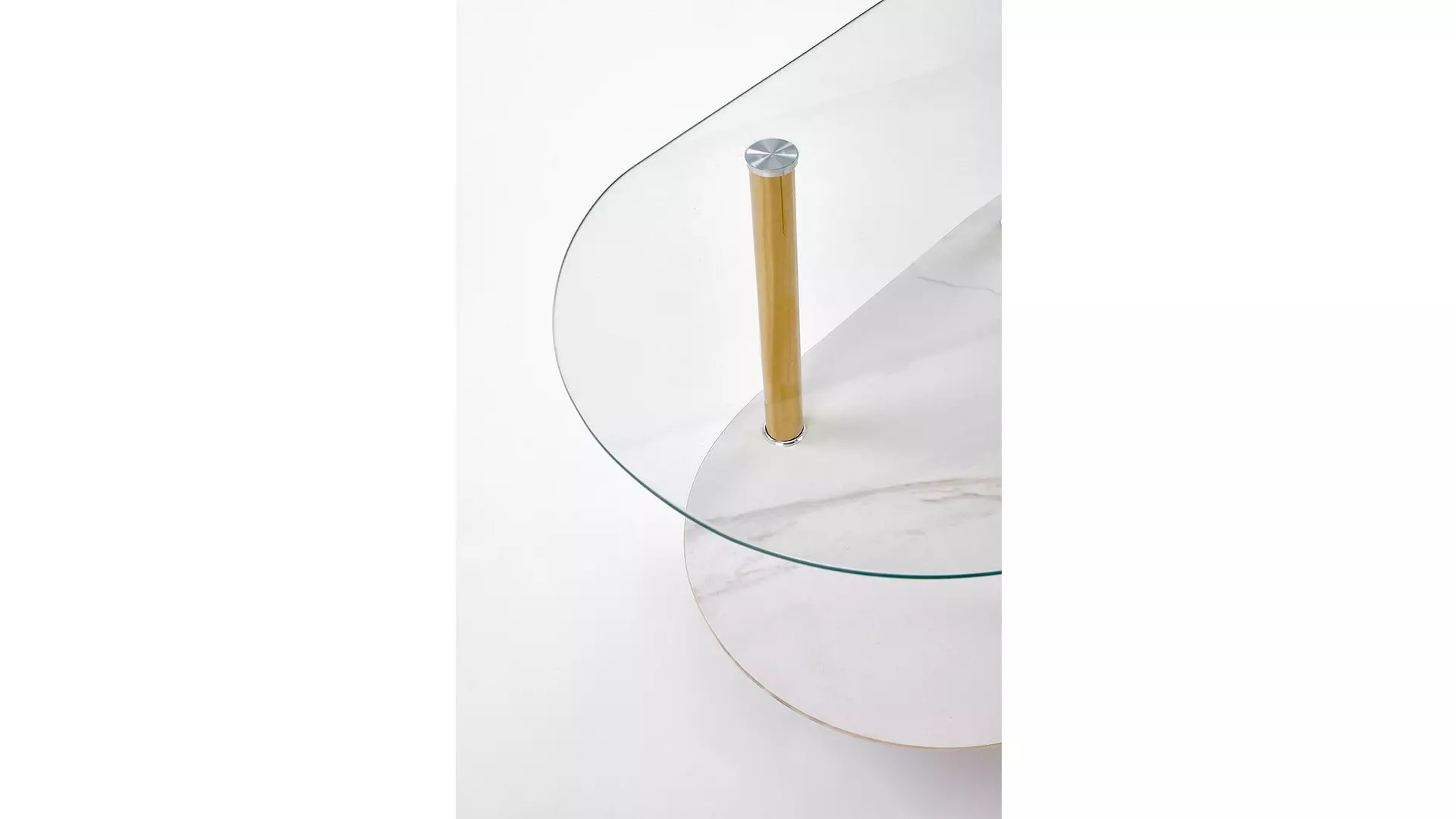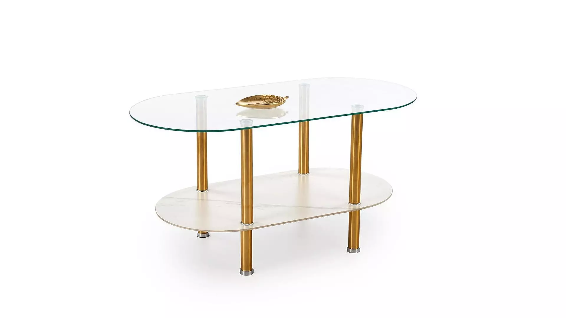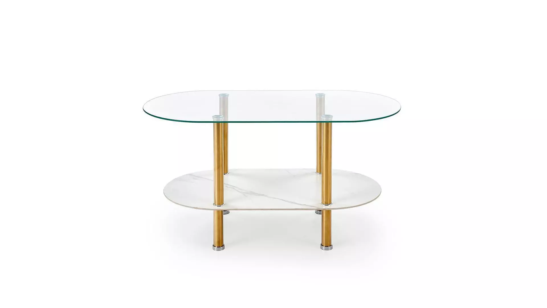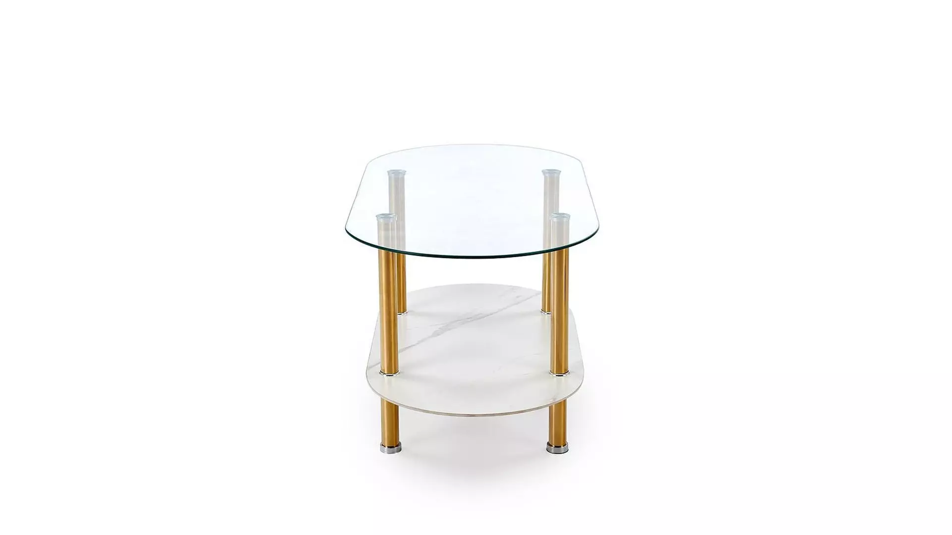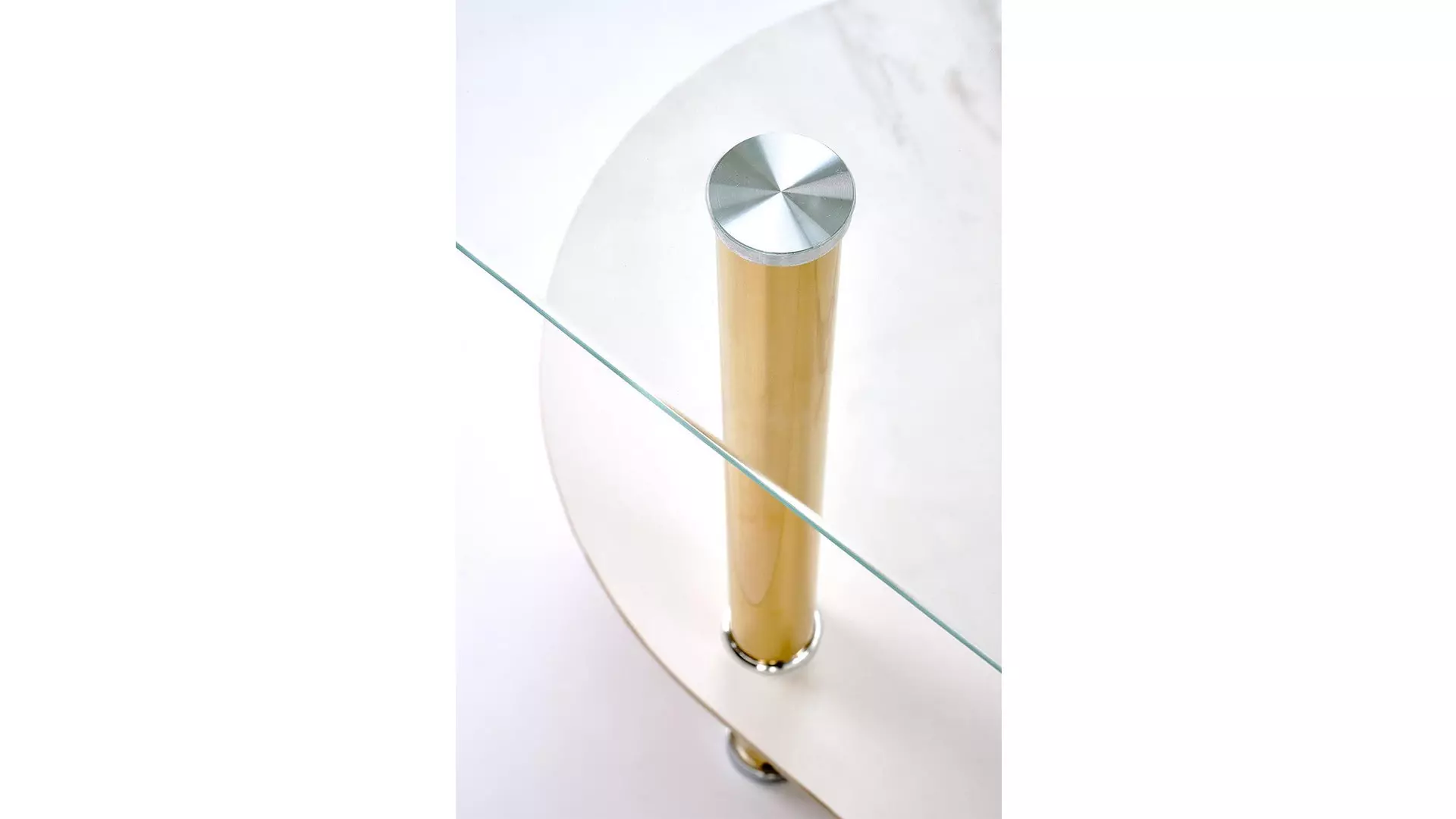 Маса Ducat е за любителите на по-претенциозните декори, които впечатляват с контрастно съчетание на стъкло, бял мрамор и златни хромирани крака.