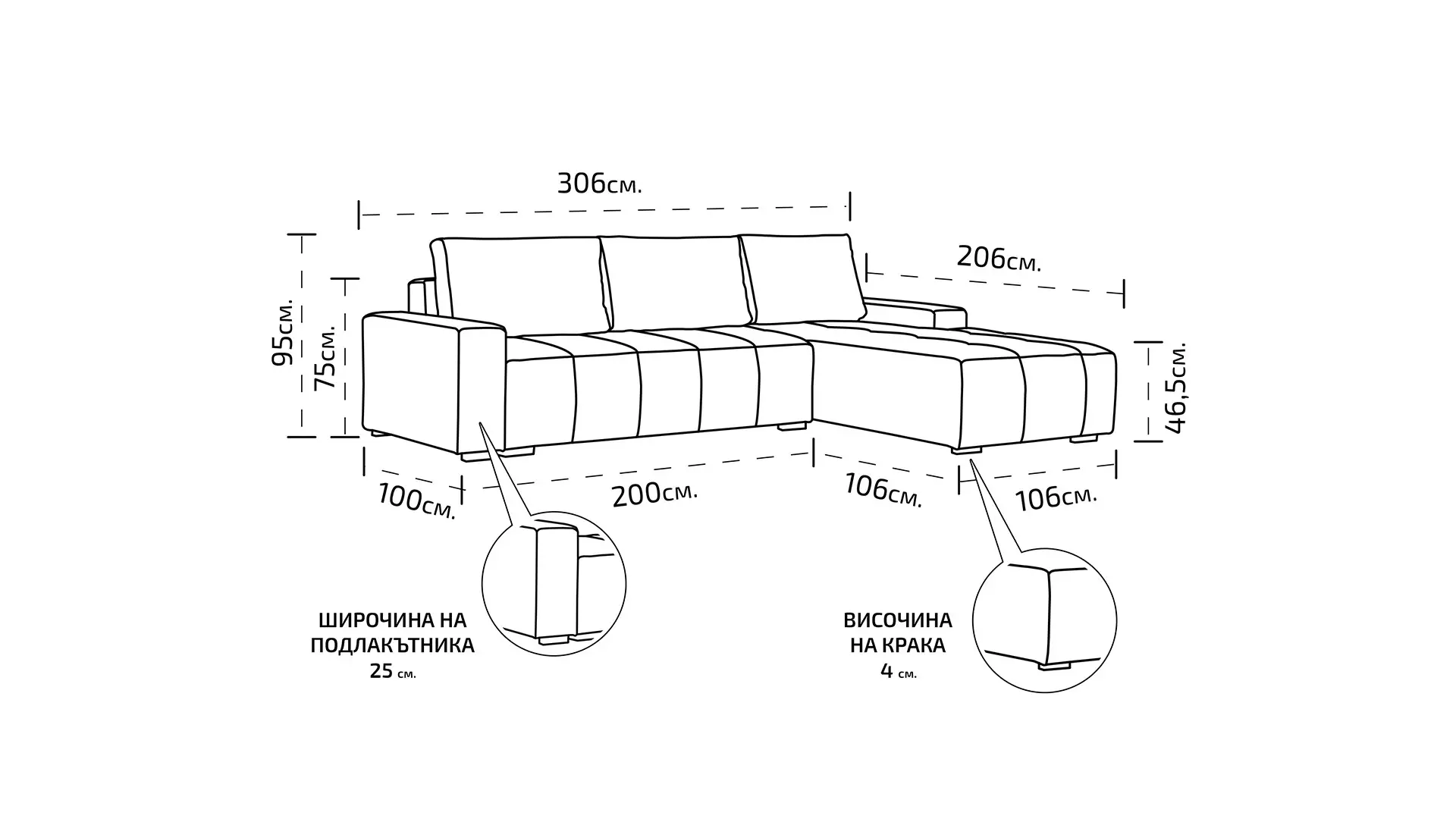 Размери: 306/206/95 см