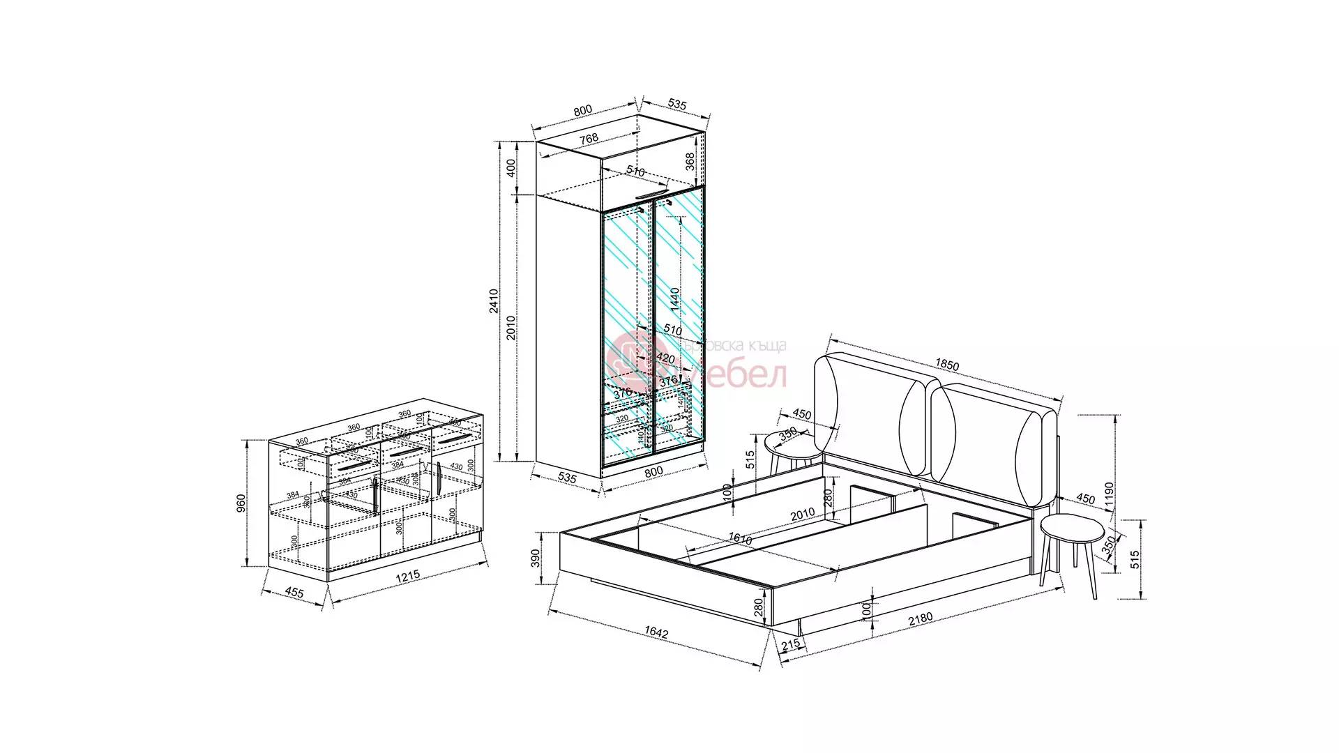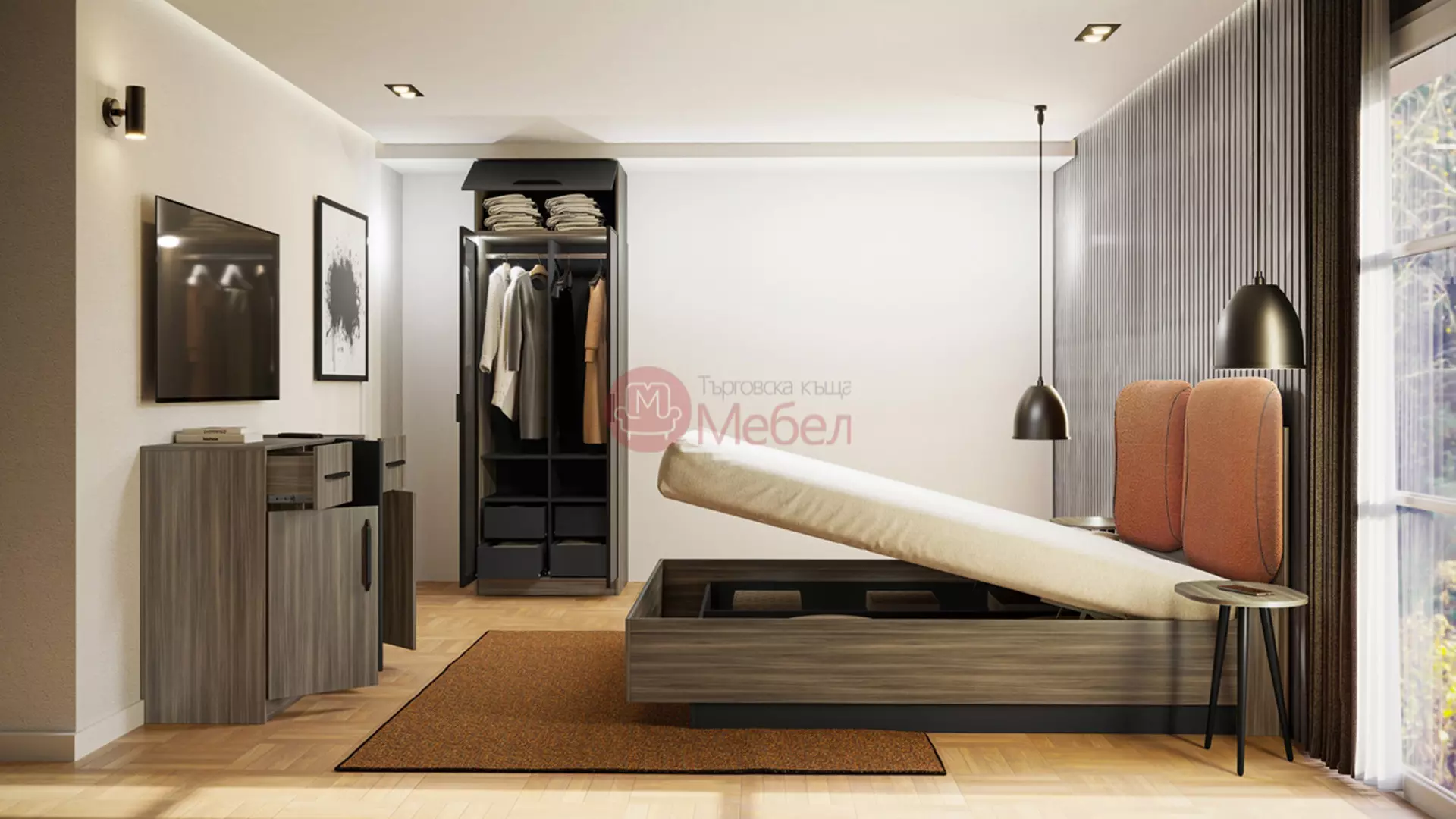 *Може да се добави еднокрил гардероб Сити 1047 с надстройка.