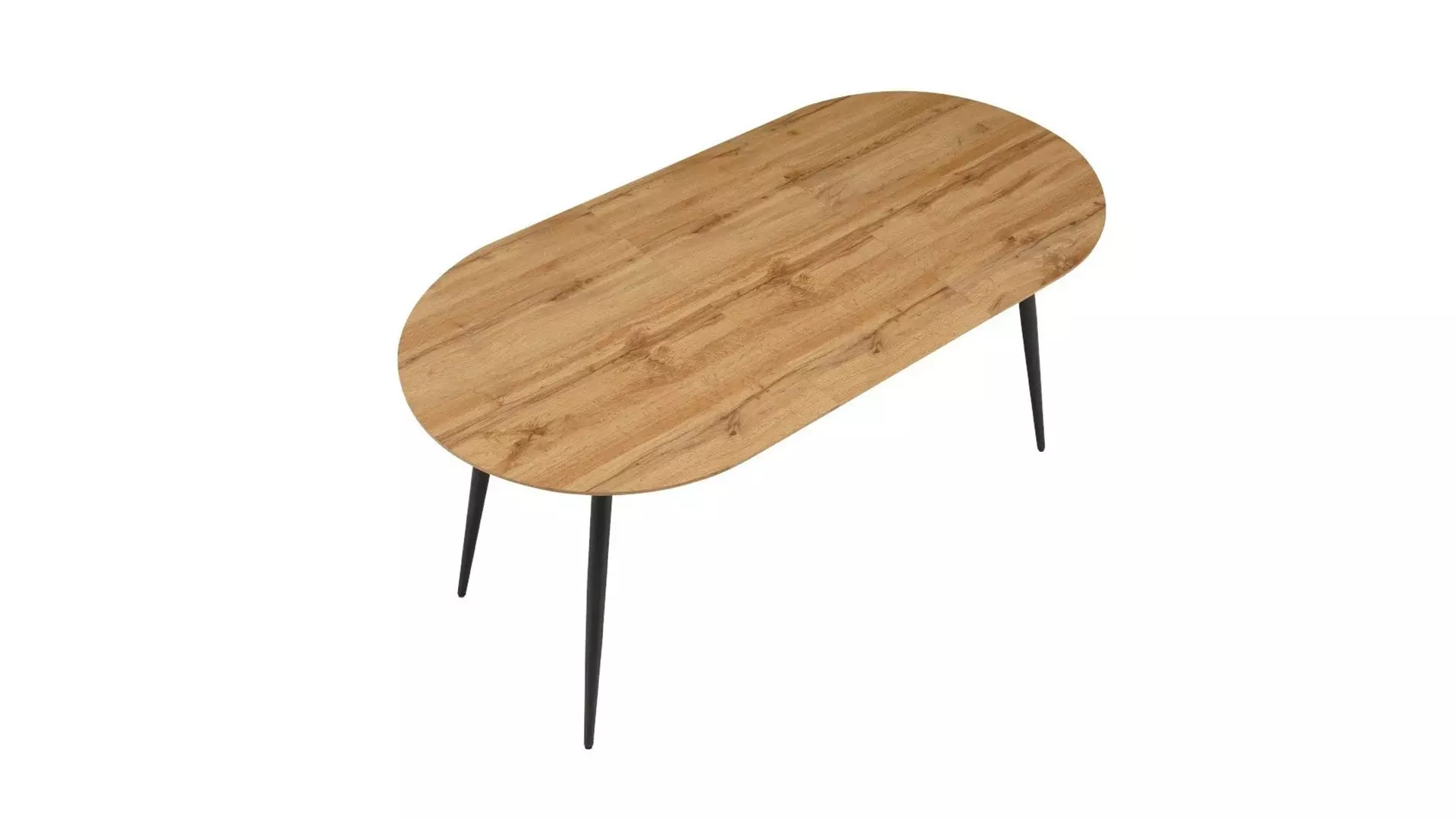 Трапезна маса Albert е с изчистен дизайн и красиви линии, подходяща е както за ежедневна употреба, така и за специални събития. Приятно съчетание на елипсовиден плот в цвят меден дъб с черни метални крака, придаващо уют във всекидневната.