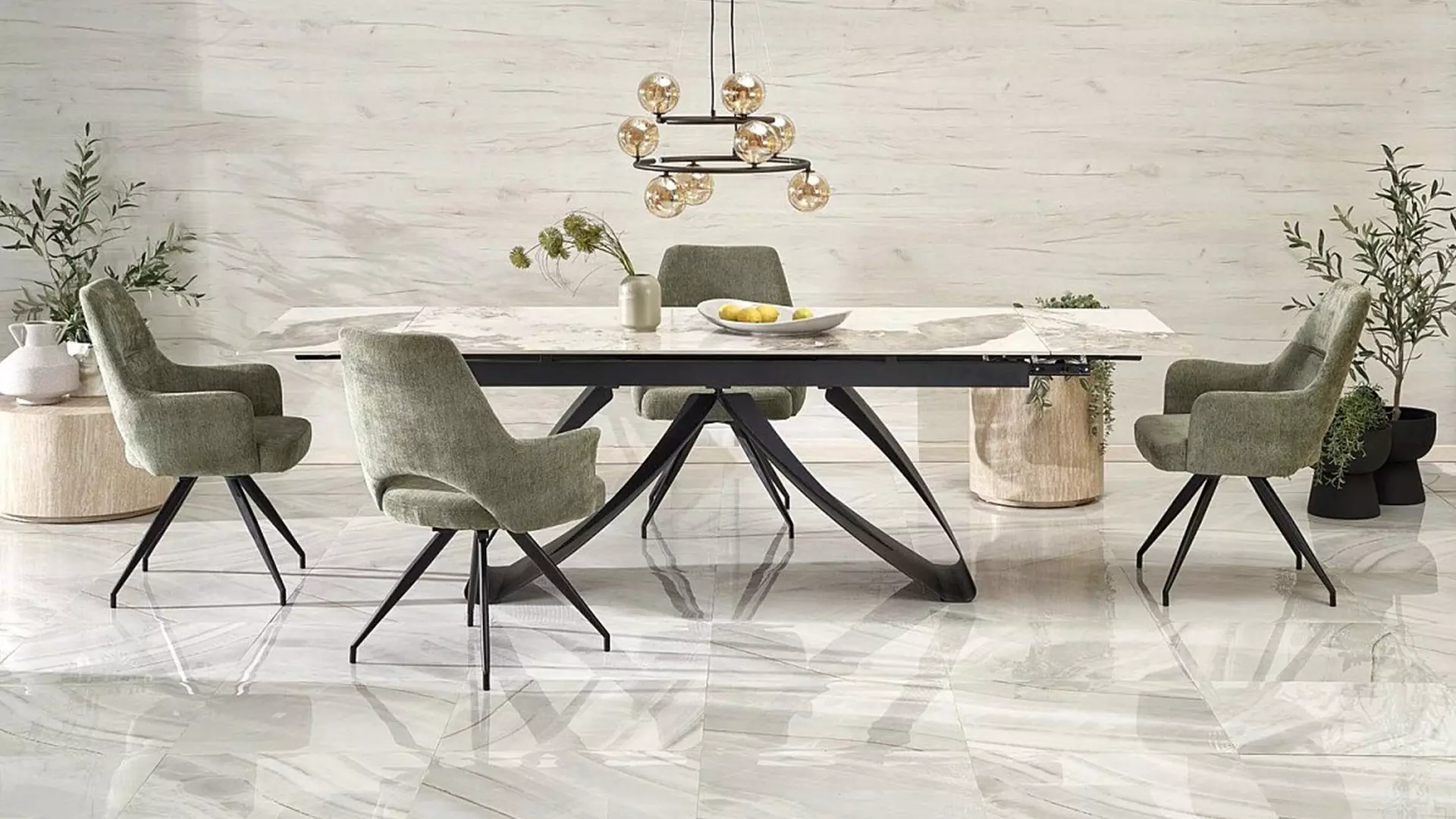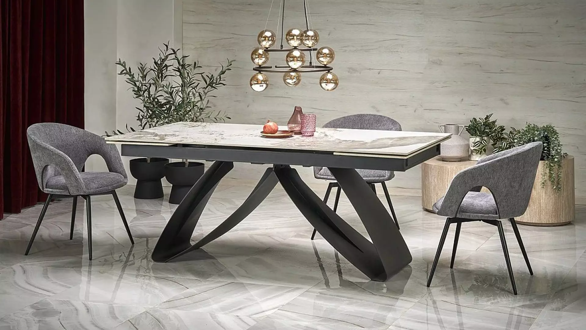 Разтегателна трапезна маса Hilario е перфектен избор за всеки, който търси съвременна и елегантна мебел, която съчетава луксозен плот от синтерован камък и метална основа. Тази маса е не само функционална, но и стилна, добавяйки нотка изтънченост и клас на всяко помещение.