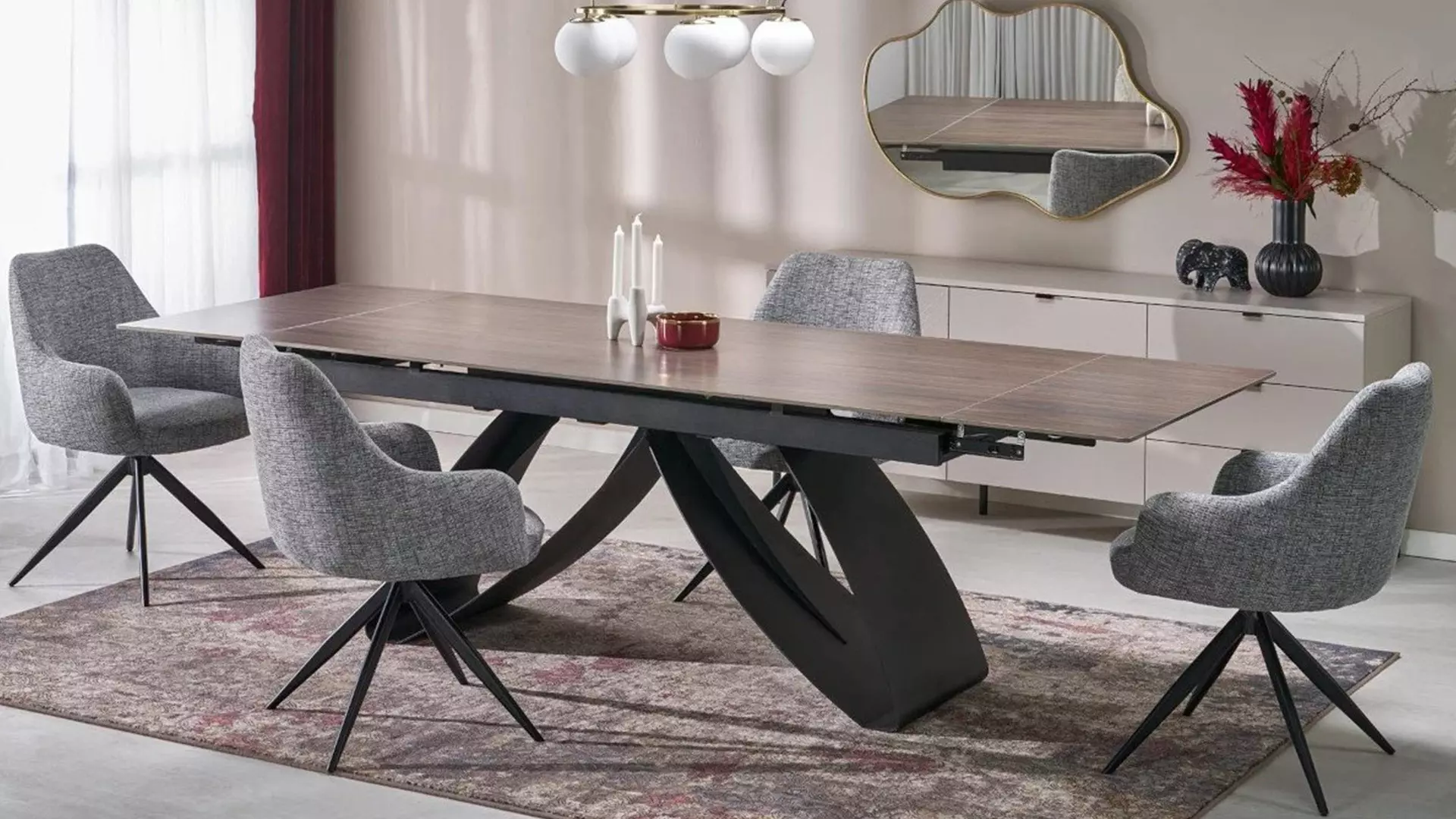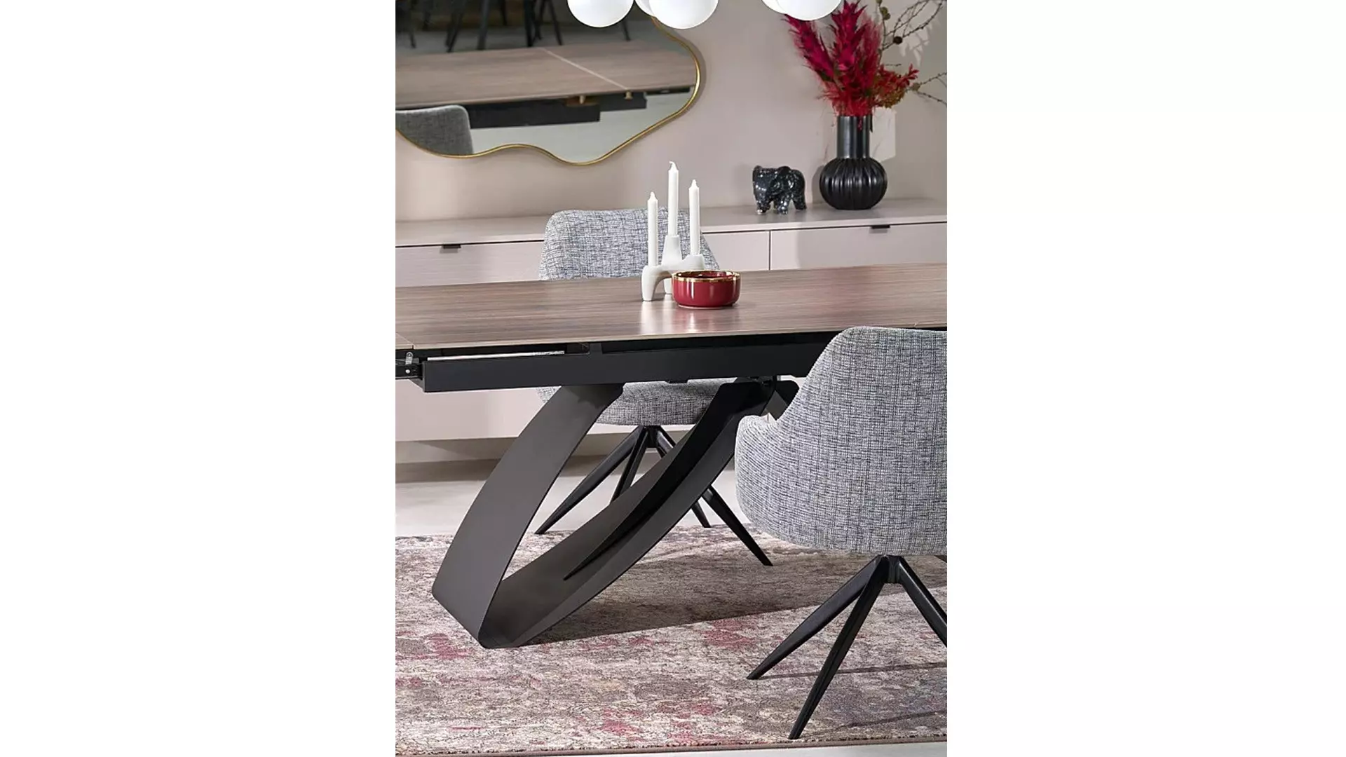 Разтегателна трапезна маса Hilario е перфектен избор за всеки, който търси съвременна и елегантна мебел, която съчетава луксозен плот от синтерован камък и метална основа. Тази маса е не само функционална, но и стилна, добавяйки нотка изтънченост и клас на всяко помещение.