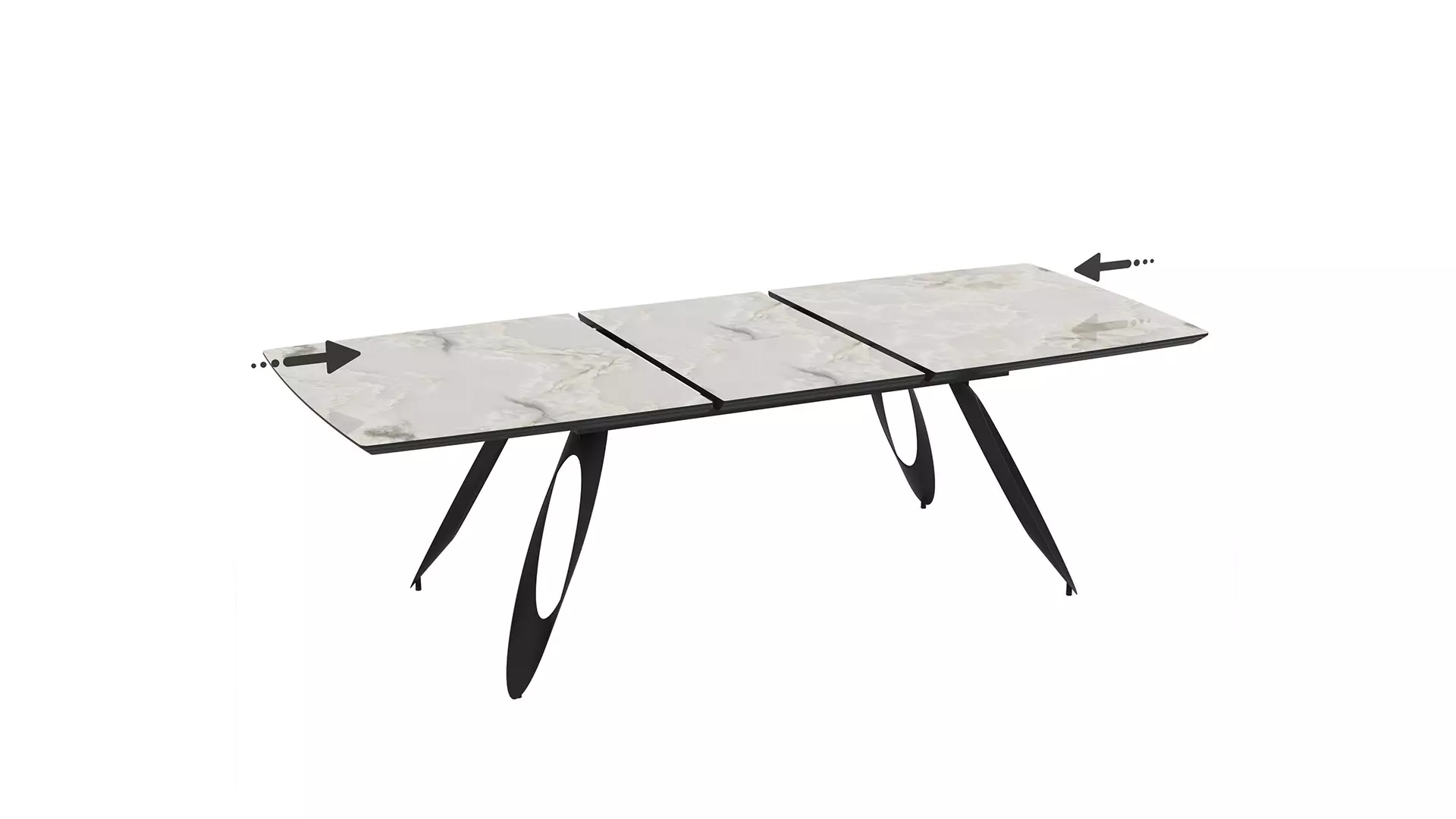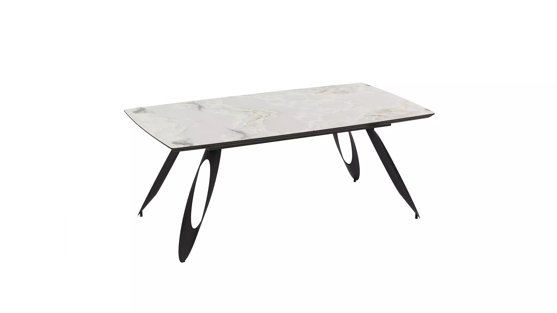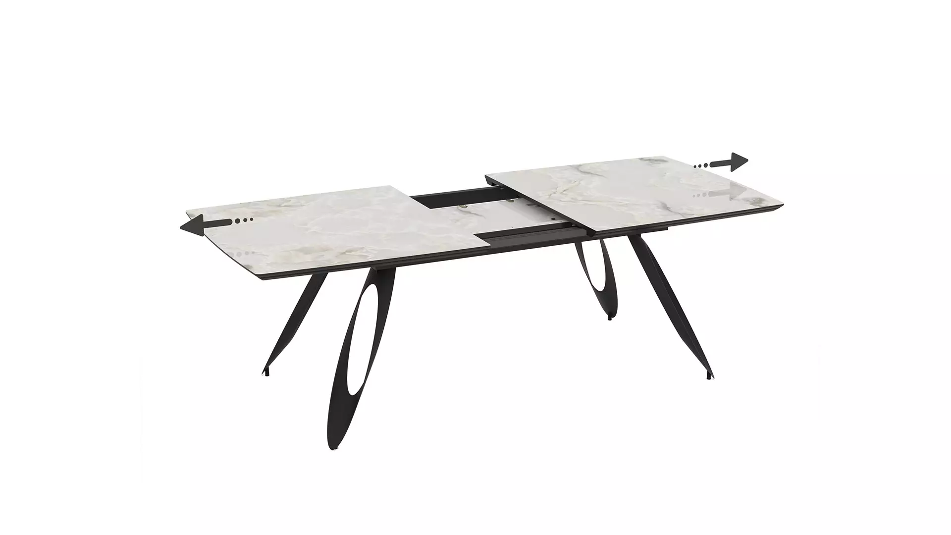 Трапезна маса Merkur е чудесен избор за дневната или трапезарията, съчетание между МДФ в бежов мрамор и прахово боядисана стомана. Със своя разтегателен плот със синхронен механизъм, тя предлага функционалност и елегантна линия, необходими за всеки изискан дом.