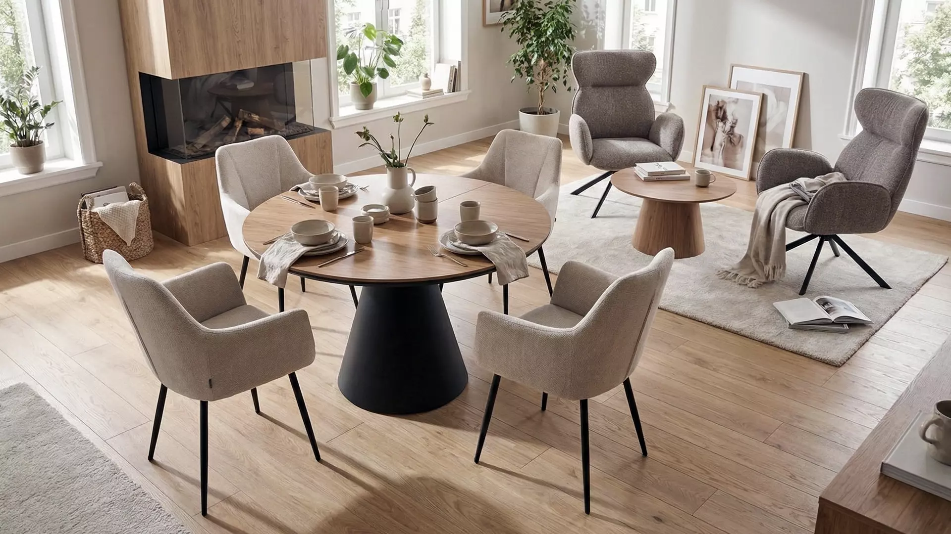 Стилна и изчистена трапезна маса Yandan, подходяща за всяка дневна или трапезария. С горна част от МДФ с имитация на дърво и метална основа, тя е изключително здрава и стилна. Mасата предлага възможност за регулиране на формата, като може да бъде, както правоъгълна, така и кръгла.