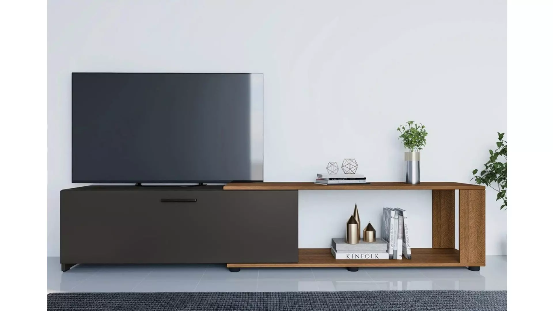 ТВ шкаф Сити 6271 е идеален избор за съвременния дом, съчетавайки практичност с модерно излъчване. Може да се разтяга, а също така да се постави в ъгъл според нуждите за организация на пространството в дома Ви.