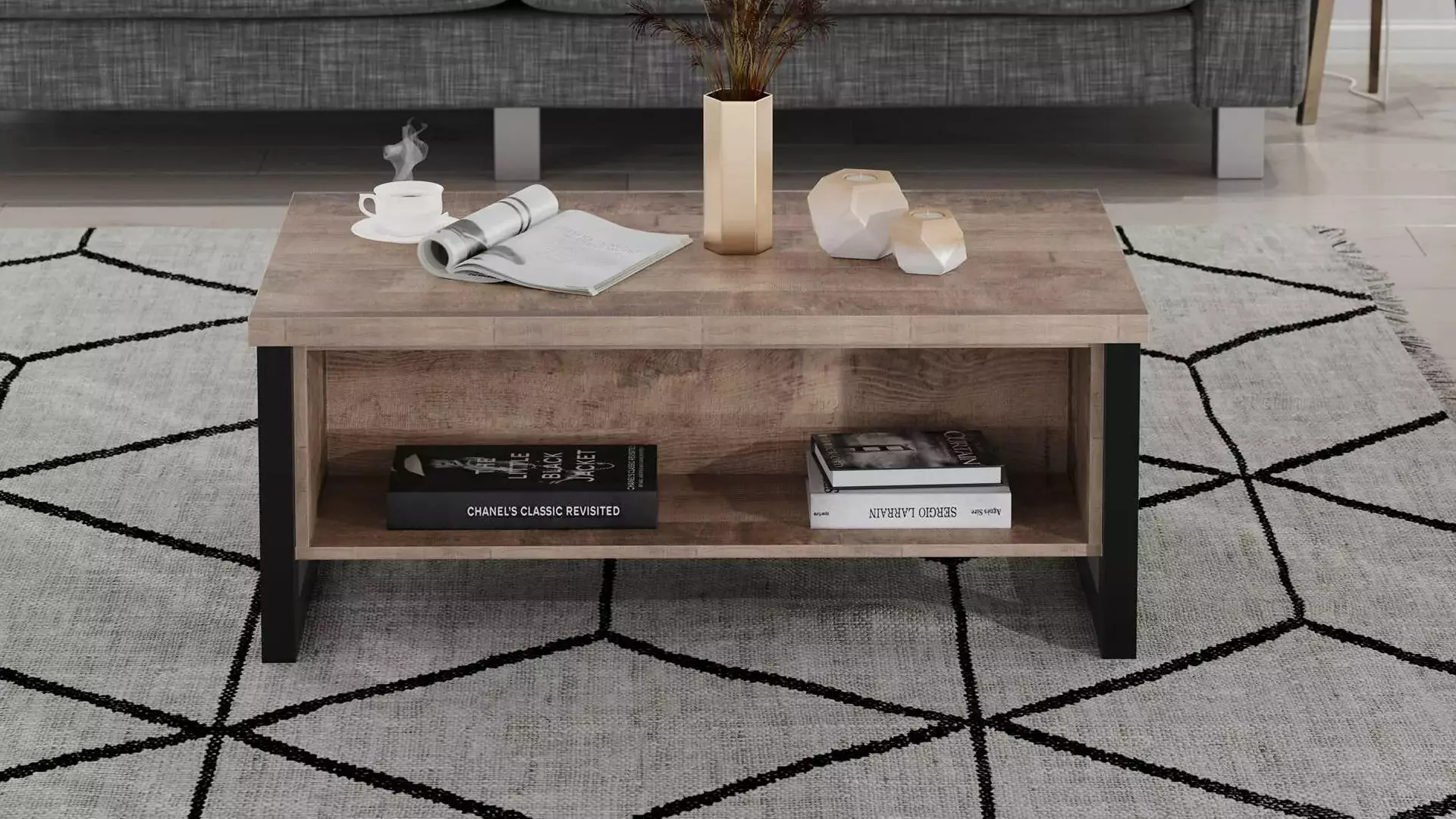 Холна маса Emili е изчистена и практична с модерно индустриално излъчване. Изработена от здраво ламинирано ПДЧ и МДФ, с ефектни черни крака, тя съчетава стабилност, устойчивост и стил.