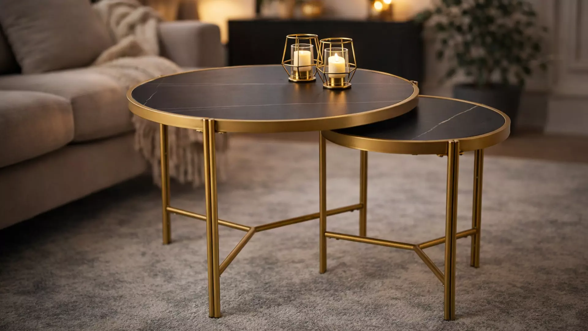 Комплект маси Fatima е чудесен избор за Вашата дневна или офис, стилно съчетание на синтерован камък и метална основа.