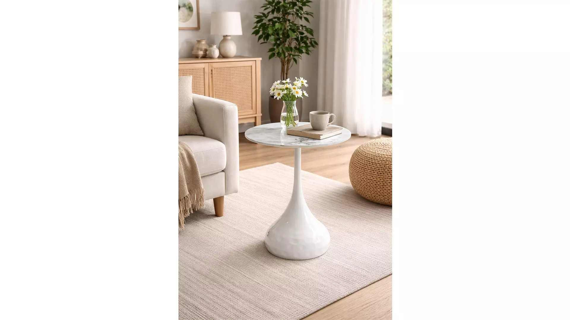 Холна маса Nova е подходящо допълнение към обзавеждането на Вашата дневна или офис, изключително практична с кръгъл плот от синтерован камък и метална основа.
