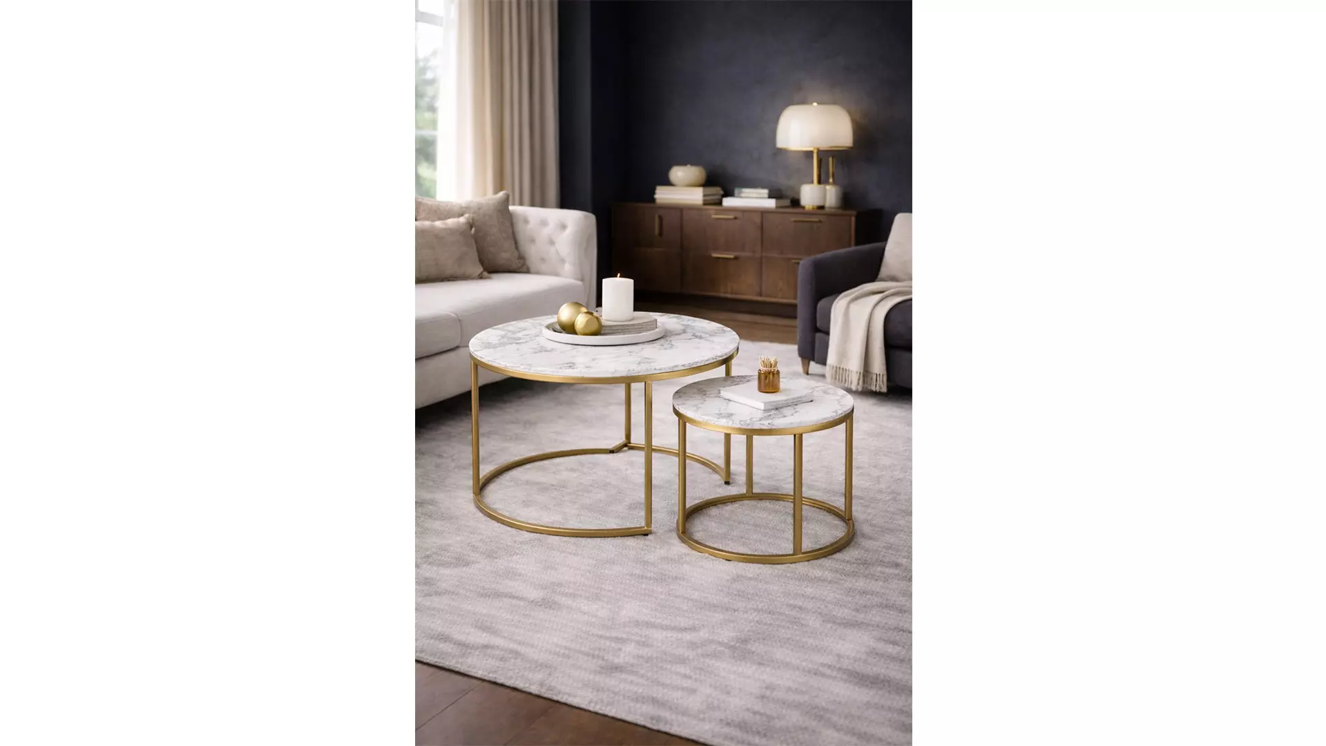 Комплект маси Paola е чудесен избор за Вашата дневна или офис, стилно съчетание на плотове от МДФ и метална основа.