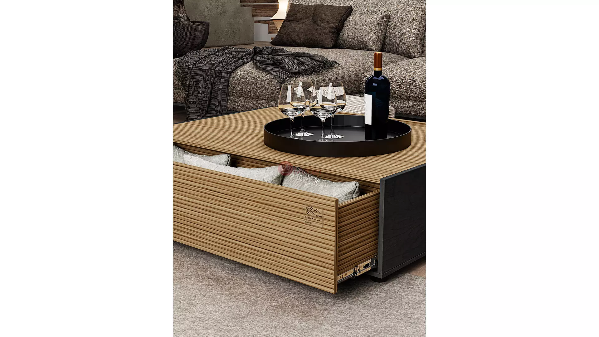 Сити 6281 е ниска холна маса с модерно излъчване в интересна комбинация от дъб герано и дъб гардън. Има две удобни чекмеджета за съхранение на вещи с водачи с вграден push механизъм и пълно изтегляне.